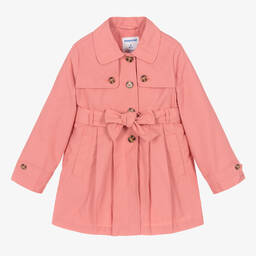 Girls red trench coat by Mayoral features a classic single-breasted design with a smooth and silky finish, enhanced by a fixed belt that ties in a charming bow at the front. Fully lined for added comfort, this coat includes practical side pockets and a lightweight feel, perfect for spring and summer outings. Limited quantities available—last chance to buy this stylish piece.