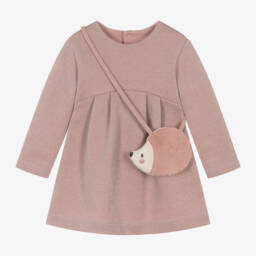Girls shimmery blue dress set by Mayoral features a soft jersey fabric woven with metallic threads, creating a delightful shimmer. This charming set includes a long-sleeved dress with pleated skirt details and convenient popper fastenings at the back. Accompanied by an adorable beige shoulder bag with a faux fur panel and embroidered fox face, it adds a playful touch. Suitable for special occasions, this set is available in limited quantities, so don't miss the last chance to buy.