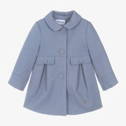 Girls pink felted long coat by Mayoral offers a delightful touch to any wardrobe. Crafted from a soft felted viscose blend, this elegant coat features tonal button fastenings and charming faux pockets with button trims. The pleated waistline and button-embellished tab on the back add sophistication, while the gold logo-engraved charm near the hemline provides a branded finish. Ideal for cooler weather, this stylish coat is available in limited quantities, making it a last chance to buy.