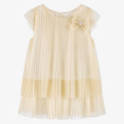 The pink lurex ruffle bow dress by Mayoral offers a charming elegance for girls. Crafted with delicate pleats and a sweet bow detail, this dress is perfect for spring and summer occasions. The shimmering lurex fabric provides a delightful sparkle, while the soft pastel hue ensures a classic look. Ideal for special gatherings or everyday wear, this dress combines beauty with comfort. Limited quantities available, making it a must-have addition to any wardrobe.