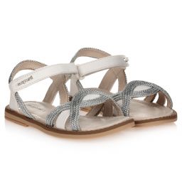 Girls white canvas velcro sandals by Mayoral, made in a soft cotton blend with charming beige trims. These sandals feature velcro straps across the foot and around the back of the heel for easy fastening and a sweet bow and flower charm on the front strap. The padded insole ensures comfort, while the Espadrille-style braided jute midsoles and rubber non-slip soles provide excellent grip. Limited quantities available - last chance to buy.
