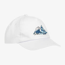 Pale blue cap for teen boys by Mayoral, made in soft sustainable cotton twill with an adjustable velcro strap at the back. It has a blue and orange embroidered sailing motif on the front and 'sailing days good days' on the back.