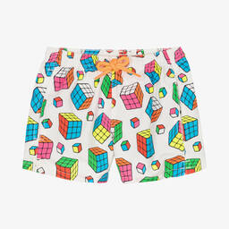 Neon yellow swim shorts for boys from Italian swimwear designer MC2 Saint Barth, made with recycled materials. Soft and lightweight, these shorts are designed with a fun blue cartoon Smurf print. They have an adjustable drawstring waistband and a breathable mesh lining for comfort. A logo badge, side seam pockets, and a velcro back pocket complete the look.