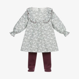 The girls white and green floral dress set by Mebi is a charming addition to any spring wardrobe. Crafted from smooth, lightweight cotton, the A-line dress features a delicate floral pattern in soft shades of red, blue, and yellow, complemented by elegant green bows on the shoulders. The ensemble is completed with a matching bonnet adorned with green ruffle detailing. Perfect for special occasions or everyday elegance, this set is available in limited quantities, offering a touch of European craftsmanship.