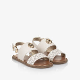 Girls brown faux leather sandals by Michael Kors Kids feature a stylish MK logo patterned upper strap, accented with a shiny gold monogram chain. The adjustable buckle strap ensures a secure fit, while the cushioned insole provides all-day comfort. The non-slip rubber soles offer excellent grip. Limited quantities available, so secure these chic sandals for the spring/summer season now.