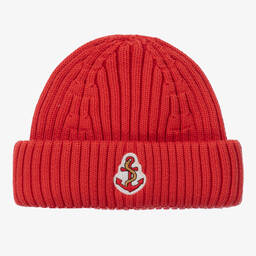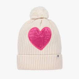 Black hat for boys and girls by Mini Rodini, made in a chunky organic cotton ribbed knit. Lined in soft fleece, it has a pom-pom on the top and secures with ties under the chin. There is a cute ivory and black Ritzrat logo patch on the brim.