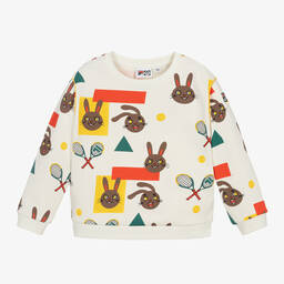 The girls ivory ladybug cotton sweatshirt by Mini Rodini offers a charming touch with its elegant broderie anglaise ruffle neckline and delightful embroidered ladybird motifs. Crafted from soft, mid-weight organic cotton jersey, this sweatshirt ensures comfort with a relaxed, dropped shoulder design. Popper fastenings at the back make dressing easy, while the exclusive design elements add a playful yet sophisticated look. Limited quantities available—perfect for adding a unique touch to a spring wardrobe.