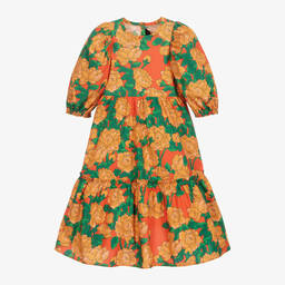 Girls yellow jewels jersey dress by Mini Rodini is crafted from soft and stretchy lyocell jersey. It features a vibrant jewel pattern, a charming Peter Pan collar, and a glittery popper fastening placket, making it both fun and quirky. Ideal for spring and summer wear, this knee-length dress offers comfort and style. Last chance to buy, limited quantities available.