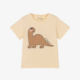 Striped organic cotton T-shirt for boys and girls by Mini Rodini, in pastel shades of pink, yellow and blue. Made from lightweight jersey, this casual piece has a wide neck collar and short sleeves. A small tab can be seen on the side seam with the brand's signature logo.