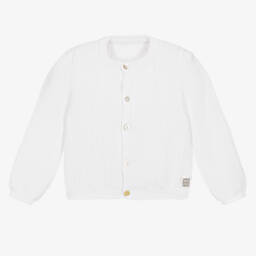 A lovely pale blue knitted baby nest for boys and girls by Minutus. Beautifully soft and warmly padded, it has a white knitted lining and knitted ruffle trims. There is a concealed front zip fastening, with a small branded tab at the bottom.