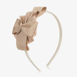 Burgundy red hairband for girls from Spanish brand, Miranda. Lovely for a special occasion, it features an elegant grosgrain ribbon bow decoration set on a narrow flexible band.