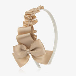 Girls pink grosgrain ribbon hairband by Miranda is a classic addition to any outfit. The flexible, narrow band is covered with soft fabric and adorned with ruffled grosgrain ribbon, finished with a charming bow on one side. Perfect for special occasions or everyday wear, this elegant hairband is suitable for ages 2-12 years. Limited quantities available, so don't miss your last chance to buy!