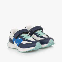 Boys blue and navy logo trainers by Mitch & Son feature a smooth fabric with faux leather accents, perfect for sporty adventures. Showcasing the iconic 'M' motif, these trainers have a velcro strap and elasticated laces for easy fitting. The lightly padded insole ensures comfort, while the flexible rubber outsole offers excellent grip. Ideal for pairing with casual outfits, these trainers are available in limited quantities, so make sure to grab them before they're gone.