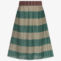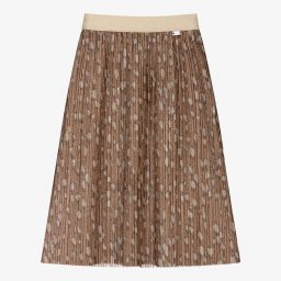 Metallic pleated skirt for girls, by Molo. Made from lightweight and stretchy metallic polyester jersey, it has an ivory and brown deer print and a glittering ivory waistband.