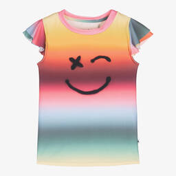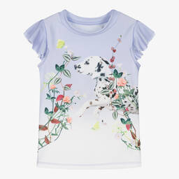 Beige and brown giraffe print sun top for girls from Danish brand Molo, with birds and flowers. Silky smooth and stretchy, it is ideal for use at the beach or around the pool with UPF 50+. This sleeveless top has frill details on the shoulders for a feminine shape.