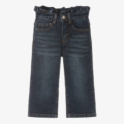 Girls white cotton denim trousers by Molo feature a relaxed fit with a flared style. Crafted from a soft cotton blend, they have a classic five-pocket design and a jacron logo patch on the back. An adjustable waist ensures a comfortable fit, while a zip and branded popper offer easy fastening. Perfect for spring and summer, these jeans add a chic touch to any wardrobe. Limited quantities available, so don't miss your chance to buy this stylish piece.