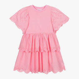 The blue ruffle sleeves dress by Molo brings a touch of elegance with its organic cotton construction. This delightful dress features a soft jersey bodice and charming flutter sleeves, highlighted by intricate broderie anglaise details. Perfectly designed for easy wear, it slips effortlessly over the head. Ideal for spring and summer outings, this on-the-knee dress offers both style and comfort. Limited quantities available, making it a must-have addition to any wardrobe.