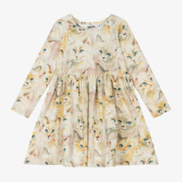 The girls floral beige cotton dress by Molo features a beautiful blend of pink and green floral patterns on a soft organic cotton jersey. This charming fit and flare style includes practical popper fastenings on one shoulder, making dressing easy. Suitable for the autumn and winter seasons, the dress offers comfort and style with its knee-length design. Limited quantities available, making it a last chance to buy this exquisite piece.