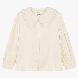 Girls pink blouse with black dot pattern by Molo is a charming addition to any wardrobe, crafted from soft organic cotton. This blouse features a rounded collar and puffed sleeves with scalloped edges, adding a touch of elegance. The mother-of-pearl button fastenings offer both style and convenience. Ideal for spring and summer outings, this blouse is perfect for creating a delightful and comfortable look. Limited quantities available, making it a must-have for the season.