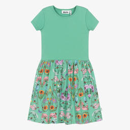 The pink bunny long-sleeve dress for girls by Molo is crafted from soft organic cotton jersey. This charming A-line dress features adorable bunny prints accompanied by floral motifs on its long sleeves. Designed with practicality in mind, it includes convenient popper fastenings on one shoulder for easy dressing. Ideal for both casual and special occasions, the dress offers comfort and style in equal measure. Limited quantities available, so secure this delightful piece while you can.