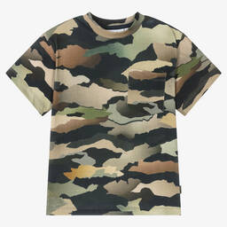 Girls purple palm tree T-shirt by Molo, crafted from soft organic cotton jersey, features a playful black graphic smiling face with palm tree eyes on the front. The T-shirt has a classic ribbed crew neck and short sleeves, making it perfect for everyday wear. Limited quantities available, so don't miss your last chance to buy this charming piece.