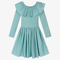 Simple and understated, this dark green dress for teen girls is designed by Danish brand Molo. Made in soft organic cotton, the ribbed bodice is decorated with a feminine poplin ruffle. The brand's monochrome logo can be found on the side seam for a discreet designer detail.