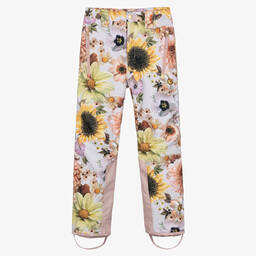 Teen girls will be ready for the slopes with these purple, crochet-patterned ski trousers by Molo, which will keep them dry, warm and visible from a distance. Waterproof, windproof and padded, they are made in soft, smooth and durable recycled fibres. These breathable trousers have lightweight insulation and are lined in cosy fleece, with taped seams to ensure they are waterproof. They have velcro cuffs with elasticated, popper-fastening, internal gaiters and removable rubber stirrups. Fastening with a logo popper and zip, they also have zipped front pockets with logo pull tabs and velcro-fastening belt loops. Light reflective detailing on one leg provides added safety.