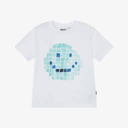 White T-shirt for teen boys and girls by Molo, bringing happy vibes to your teen's casual collection. Printed with a black smiling face on the front for a graphic look, it is made in soft organic cotton jersey for relaxed comfort.