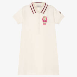 Little girls red, down padded dress by Moncler Enfant. Silky and lightweight, this warm and lightweight design is super warm and comfortable to wear. It has a front taped zip, with chin guard and a white logo print. The inside is lined in soft cotton jersey.