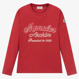 Younger boys and girls white cotton long sleeved logo top by luxury brand Moncler Enfant. Made in soft, comfortable cotton jersey, this casual top has a small crew neckline and useful branded popper fastenings on one shoulder. The brand's signature logo patch is appliquéd on the front in array of eye catching colours, for an added designer touch.
