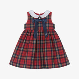 Monnalisa Chic baby girls delightful pink satin and white organza striped dress that has been treated with a glaze to give the fabric a sheen and stiffness. The style has capped pink sleeves and a full flared striped skirt that is lined in soft cotton for comfort. It has a peter pan collar, trim with a white grosgrain ribbon around the chest and silver tread sewn within the stripe. The dress is fully lined in lovely soft cotton and has two pearlised buttons at the back for ease of dressing.