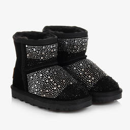 Bright pink boots for girls by Monnalisa, encrusted with pink and silver diamantés. Ideal for the colder months, these boots are lined in the softest faux fur, and have non-slip rubber outsoles for a good grip. There are branded, brown patches on the heels for a designer finish.