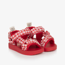Black check sandals for girls by Monnalisa feature a charming gingham pattern with silky satin uppers. These elegant sandals offer comfort with a moulded footbed and a lightly textured rubber sole, ensuring ease of wear. A convenient velcro strap provides a secure fit, while the branded tab at the heel adds a touch of sophistication. Perfect for spring and summer outings, these sandals are available in limited quantities, so seize the chance to add them to your collection.
