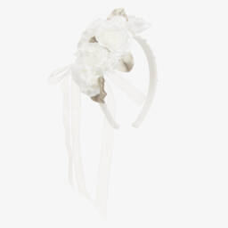 Girls pink flower hairband by Monnalisa is a charming accessory for special occasions. The band is covered with soft fabric and adorned with exquisite floral appliqués, shimmery ribbons, and sparkling diamantés, creating an elegant look. Perfect for enhancing any festive attire, it offers a flexible fit for comfort. Limited quantities available, so don't miss out on this delightful piece.