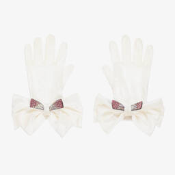 Elegant red velvet gloves for teen girls by Monnalisa, great for adding a touch of class to an outfit. They are decorated with a large bow appliqué trimmed with sparkly diamantés.