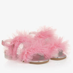 Teen girls white ruffle sandals by Monnalisa feature large tulle ruffles on the front straps for a glamorous look. The metallic silver leather lining and a logo-engraved heart charm add a designer touch. These sandals are crafted from smooth leather with non-slip rubber outsoles and secure with silver buckles at the ankle. Limited quantities available, last chance to buy.