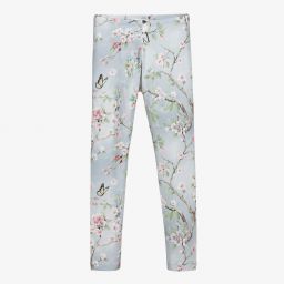 Teen girls pale pink leggings from Monnalisa, with a colourful blossom and bird pattern. Made in comfortable cotton jersey, they are easy to wear on casual days.