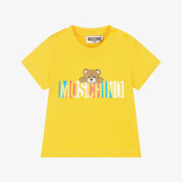 This delightful teal blue T-shirt for boys by Moschino showcases the iconic Teddy Bear motif in a vibrant logo design. Crafted from soft cotton jersey, it ensures comfort and breathability for everyday wear. The practical popper fastenings on the shoulder make dressing easy, perfect for busy mornings. With limited quantities available, this stylish piece is an ideal addition to a young wardrobe, suitable for casual outings or playful adventures.