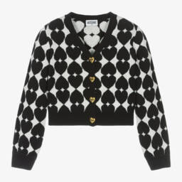 The girls wool blend cardigan by Moschino Baby is a charming addition to any wardrobe. Crafted with a soft mix of cotton and wool, this cardigan features raglan sleeves, ribbed trims, and faux pockets. A delightful padded appliqué with the iconic Moschino Teddy Bear on a golden heart decorates the chest, with branded button fastenings completing the look. Suitable for keeping cosy during cooler days, this piece offers both style and comfort. Limited quantities available, so don't miss out.