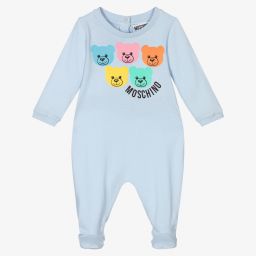 Adorable pink babygrow for girls by Moschino Baby, made from soft organic cotton jersey. It has a cute pastel-coloured Moschino Teddy Bear logo print on the chest, with popper fastenings on the back for easy dressing. Presented in a gift box, it makes an ideal present for a new arrival.