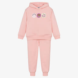 The girls pink velour logo set by Moschino offers a playful touch with its soft, velvety texture and iconic raised logo lettering. Featuring a long-sleeved top with a branded zip pull and stretchy ribbed trims, it provides comfort and style. The jersey-lined hood with adorable pop-up ears adds warmth, while the matching joggers complete the look. With limited quantities available, this delightful set is lovely for keeping cosy during cooler days.