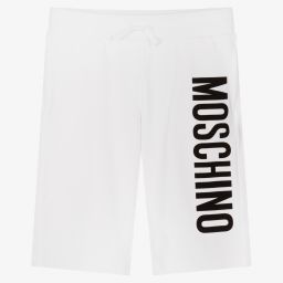 Girls white cotton teddy bear shorts by Moschino offer playful style with their Moschino Teddy Bear and black logo print. Crafted from soft and stretchy jersey, these shorts feature a drawstring waistband for a perfect fit, frilled cuffs for a feminine touch, and practical concealed side seam pockets. Ideal for casual wear, these shorts are both comfortable and stylish. Limited quantities available, so don't miss your last chance to buy.