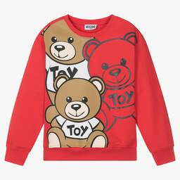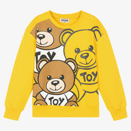 Black cotton sweatshirt for teen boys and girls, unmistakably by luxury Italian designer Moschino Kid-Teen, with a montage of the brand's iconic Teddy Bears printed on the front, one in a grey outline. This casual, regular fit sweatshirt is made in soft, comfortable cotton jersey with a cosy, fleecy inside, just right for cooler days.