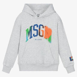 A black hoodie for boys by MSGM, made from the softest cotton jersey. Bold and distinctive, it has a colourful graffiti-effect logo printed on the front, with a matching branded patch on one sleeve. A pouch pocket, ribbed trims and a fleecy underside finish this relaxed-fitting style.