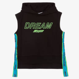 The black logo hoodie for boys by MSGM, crafted from soft, mid-weight cotton jersey, is perfect for everyday wear. It features dropped shoulders and an oversized fit, providing ultimate comfort and style. The hoodie is designed with a pouch pocket on the front, a tonal rubberised logo on the chest, and a small logo patch on the sleeve. Limited quantities available, so grab this essential piece while you can.
