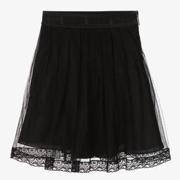 A stylish pink tulle and lace skirt for girls by MSGM, made in layers of delicate tulle. The elasticated waistband features a repeat logo design, adding a signature designer touch. The skirt is accented with a pretty black lace hem and is comfortably lined in soft cotton. It also features a concealed zip fastening on the side for a neat finish. Limited quantities available.