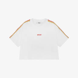 A white short-sleeve logo T-shirt by MSGM is crafted in soft cotton jersey, featuring a bold black print on the chest and an inspiring slogan on the back. The lightweight material ensures breathability, making it perfect for spring and summer wear. Ideal for junior boys, this tee offers a modern and stylish look, easily paired with jeans or shorts. Limited quantities available, so don't miss your chance to add this stylish piece to your wardrobe.