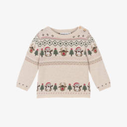 The boys festive fair isle sweater by NAME IT features charming seasonal motifs like penguins and snowflakes in a soft knit design. Crafted from pure cotton, it includes cosy ribbed trims and practical shoulder buttons for easy dressing. Suitable for adding a touch of holiday spirit, it's a delightful choice for chilly autumn and winter days. With limited quantities available, this piece is a must-have for the festive season.