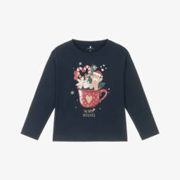 Girls festive red cotton top by Name It features a delightful 'Let's Party' Christmas tree motif, suitable for the celebratory season. Crafted from a soft, organic cotton-blend jersey, it offers both comfort and style. The stretchy fabric allows easy wear, keeping your little one cosy throughout the autumn and winter months. Limited quantities available, so make it a part of your child's wardrobe today.