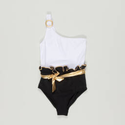 The girls white textured swimsuit by Nessi Byrd blends classic elegance with playful colour accents. Crafted from a soft, stretchy fabric with UV50 protection, this swimsuit is fully lined for added comfort. The vibrant green, pink, and yellow overstitch trim adds a stylish touch, making it perfect for sunny days by the pool. With limited quantities available, this is your last chance to buy this chic swimwear piece for the spring and summer season.